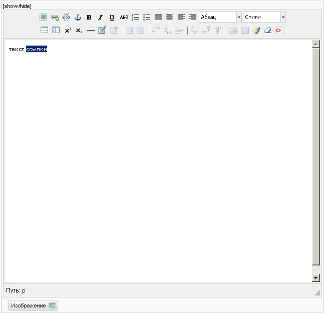 ВСТАВКА / РЕДАКТИРОВАНИЕ ССЫЛОК (URL)